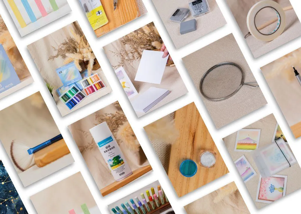 部分工具(如橡皮、模具、棉棒等)是可重复使用的,粉彩棒与纸张数量足以支持你完成整个课程及后续长期的自由创作。合理使用之下,可以支持作品练习与发挥。